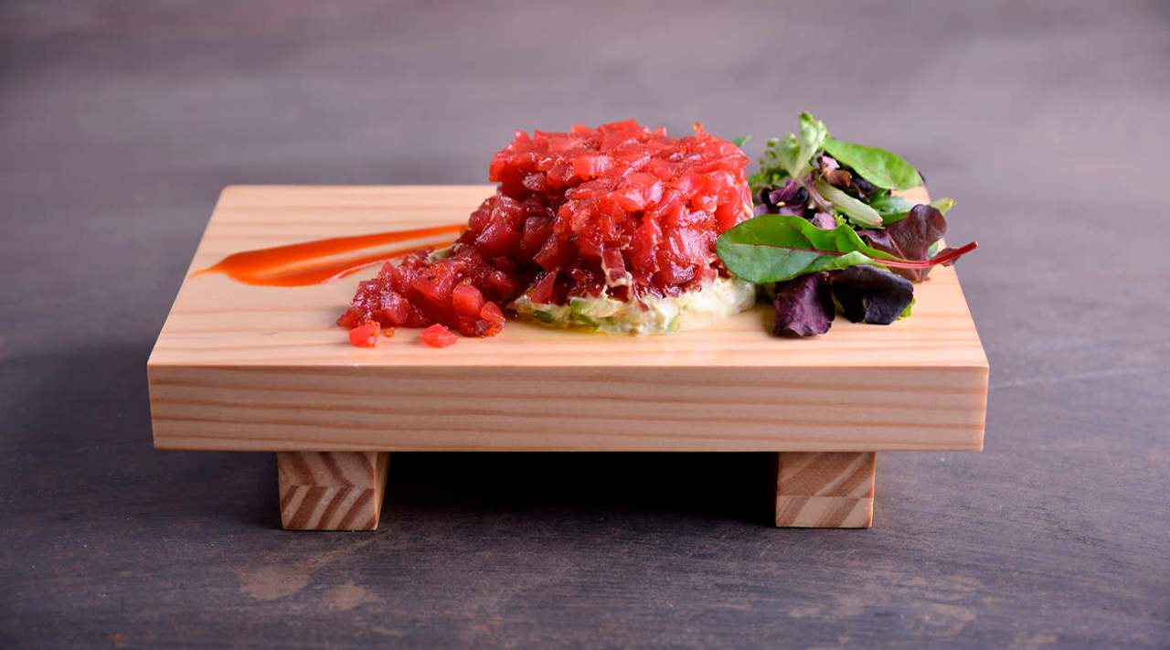 con cebolla y sardina ahumada. Aliñado con Aove y sal maldon