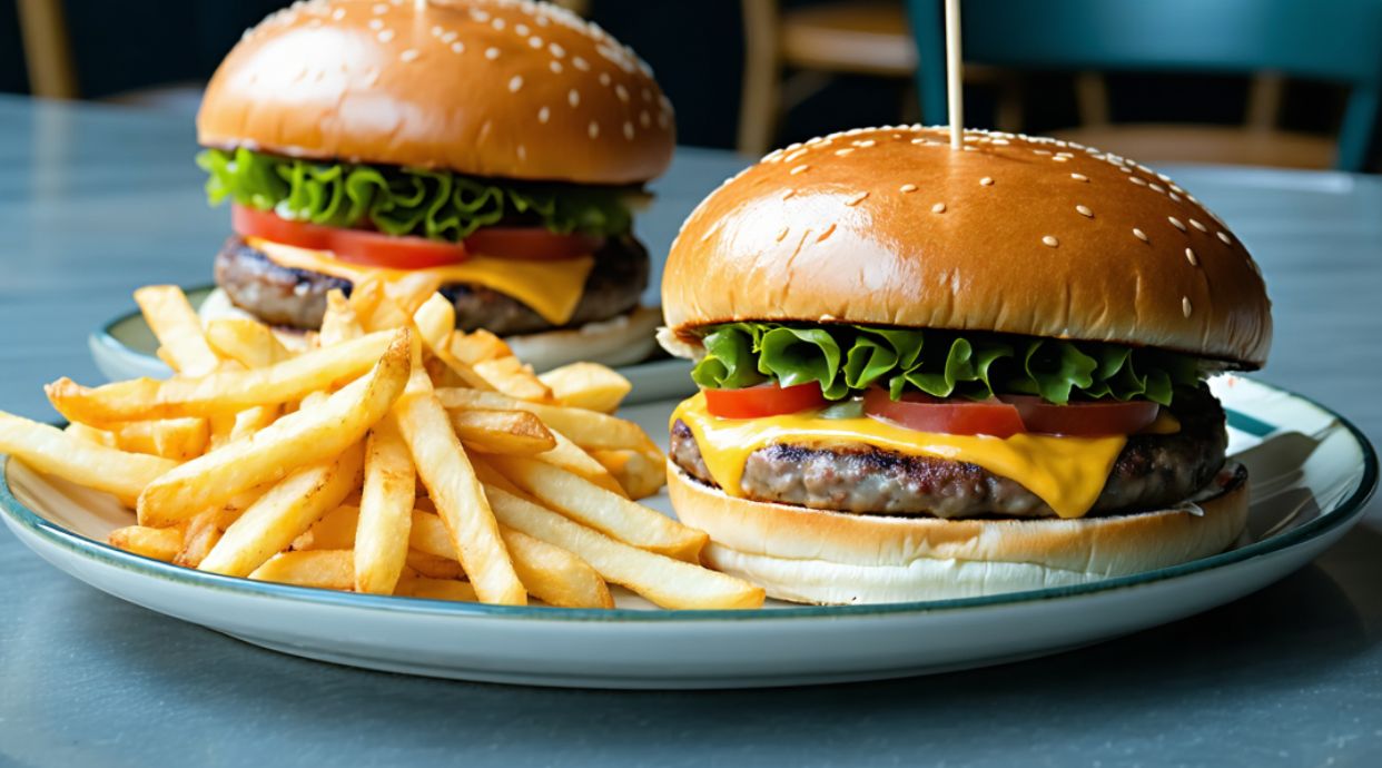 ternera, cebolla, tomate, lechuga , papas fritas , salsas.