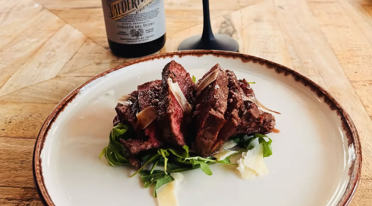 Carne jugosa con toques herbales, parmesano y demi-glace (salsa española)