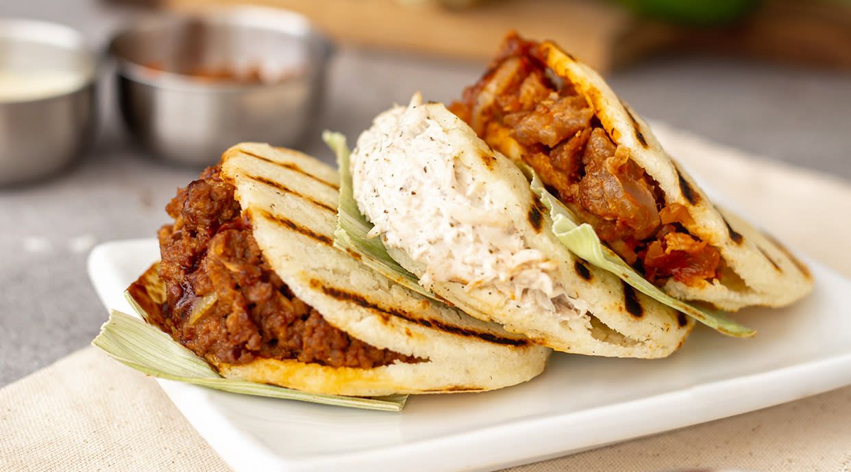 AREPA RELLENA DE JUDIAS NEGRAS,QUESO BLANCO,MECHADA Y TADAJAS.