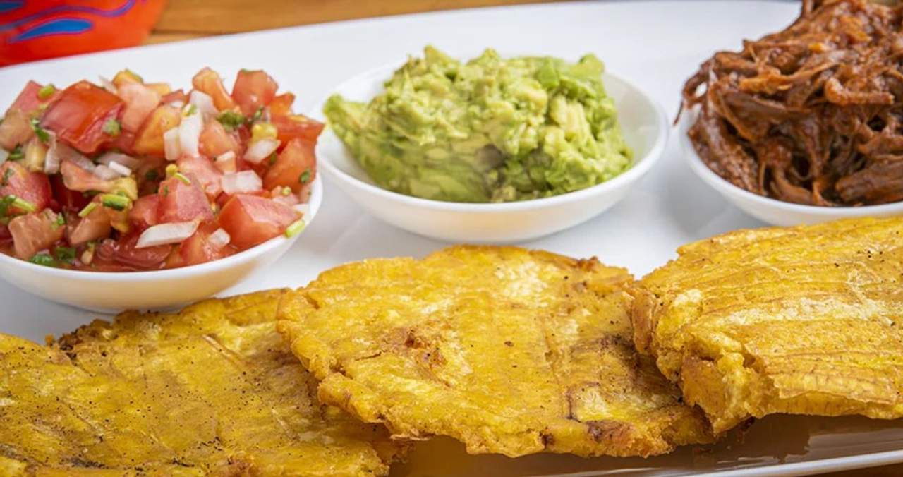 Tostones de plátano macho con ternera desmechada