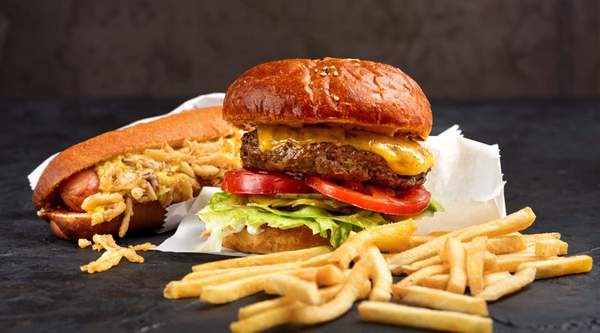 Hamburguesa 100% vacuno 180g, tomate, lechuga mezcla, cebolla, queso, salsa miel mostaza