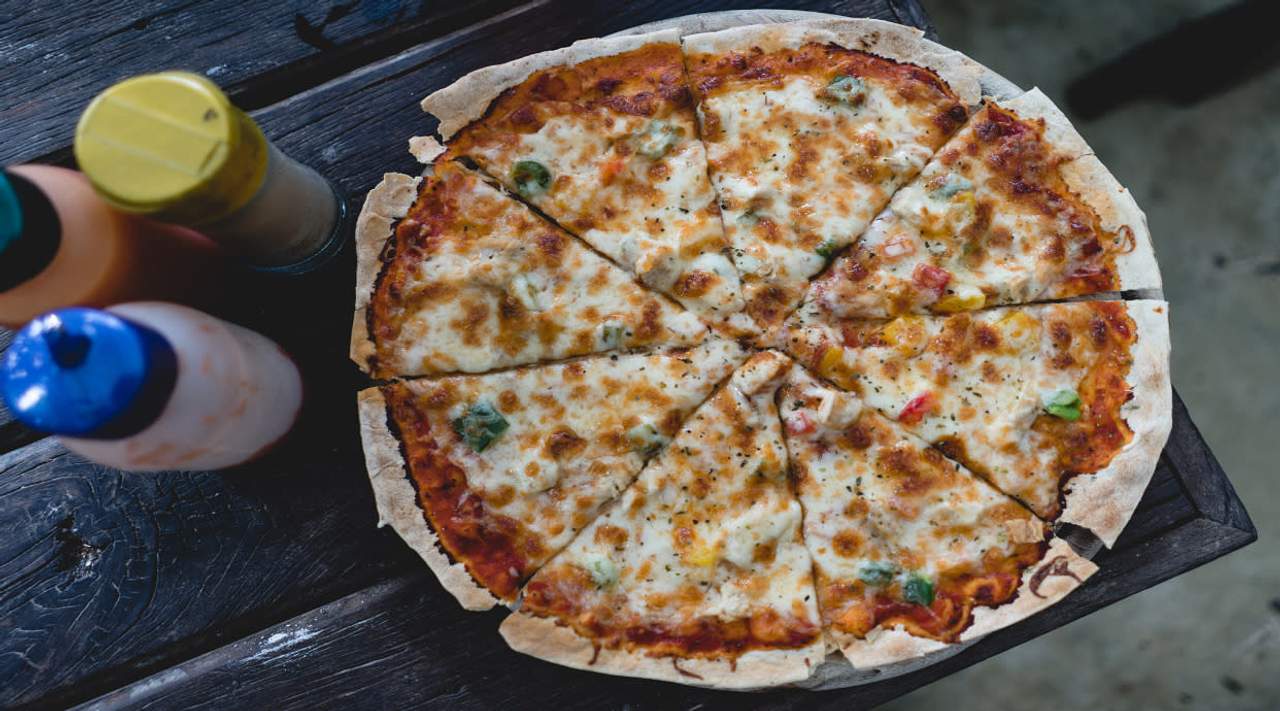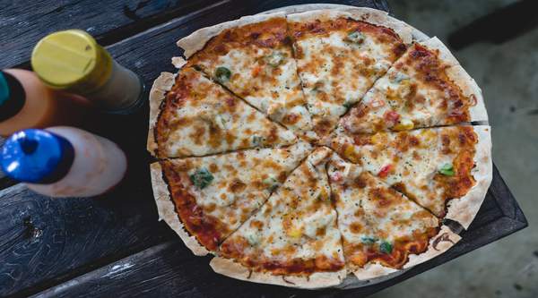 ცომი წითელი სოუსით და მოცარელას ყველით, ხმელი ორეგანო