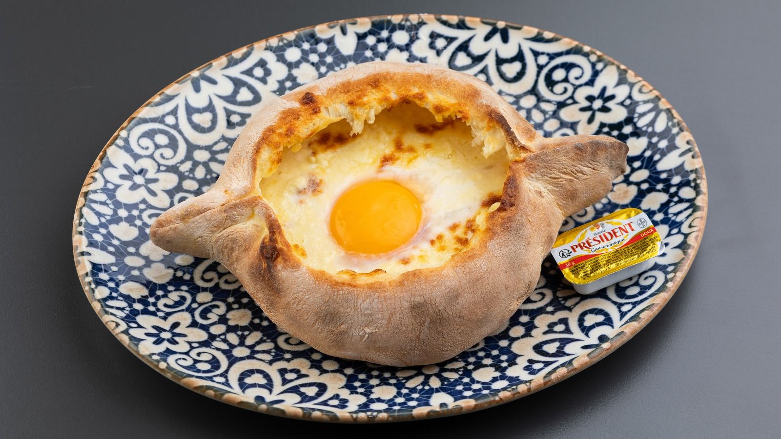 აჭარული ხაჭაპური, კარტოფილი ფრი, კარაქი და „კოკა-კოლა“.