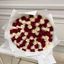 გულის ფორმის კომპოზიცია წითელი და თეთრი ვარდებით