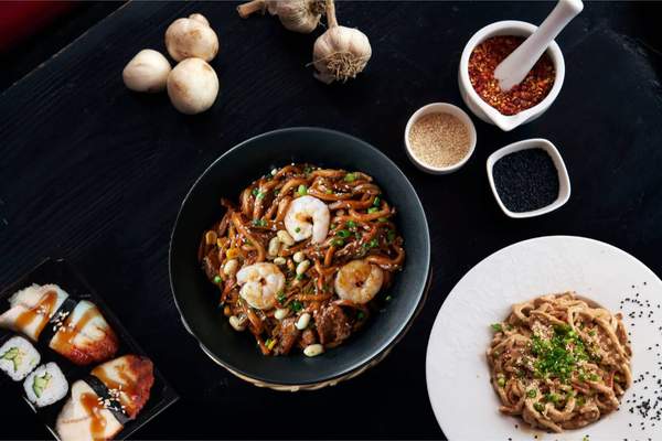 აზიური სამზარეულოს მოყვარულებს, ვთავაზობთ ბრინჯის ატრიას ქათმის და საქონლის ხორცით, ბოსტნეულით და საფირმო სოუსებით . შემადგენლობა: ბრინჯის ატრია, ქათმის და საქონლის ხორცი, კომბოსტო,სტაფილო,მწვანე ბულგარული,სეზამის მარცვალი.