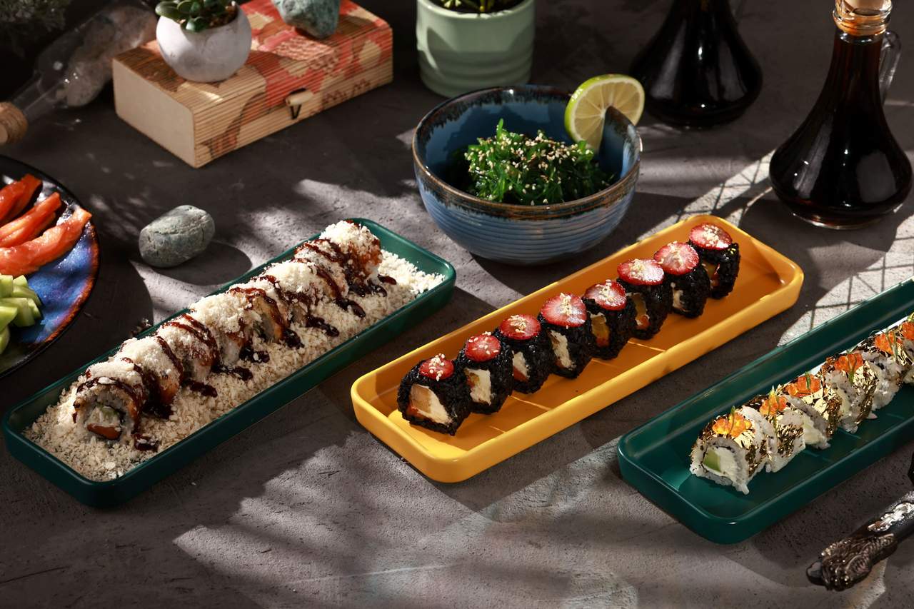 კალიფორნია სურიმი და ხიზილალა 8 ნაჭერი,ფილადელფია 8 ნაჭერი,ორაგულის როლი 8 ნაჭერი,კაპა მაკი 6 ნაჭერი,კაპა მაკი კრემ-ყველით 6 ნაჭერი, სურიმი მაკი 6 ნაჭერი. ხიზილალის ფერი შესაძლოა იყოს: შავი, წითელი, ნარინჯისფერი.
