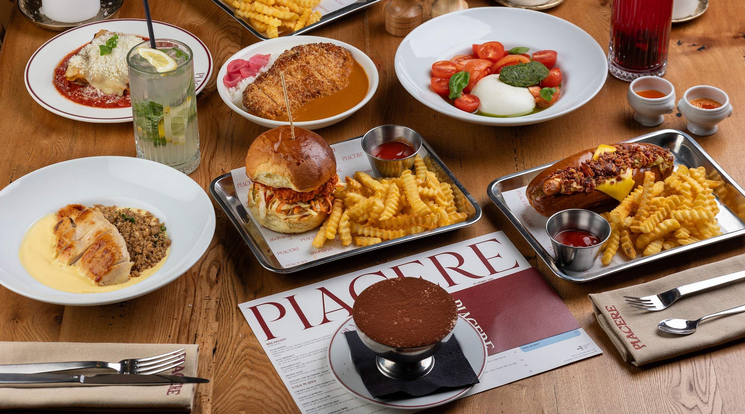 ბრიოში, საქონლის ხორცი, ჩედარი, თეთრი ხახვის მარინადი, გოჩუჩანგის სოუსი, თოხლოდ შემწვარი კვერცხი, ფრი და სოუსი (ცხარე)