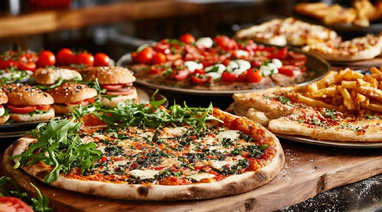 პიცის ცომი, აისბერგი, ვარდისფერი პომიდორი, ჩიმიჩურის სოუსი, მწვანე ვაშლი, ბეკონი, ღორის ბარკლის შაშხი დაკეპილი, კოქტეილ სოუსი, ფრი, გაზიანი სასმელი