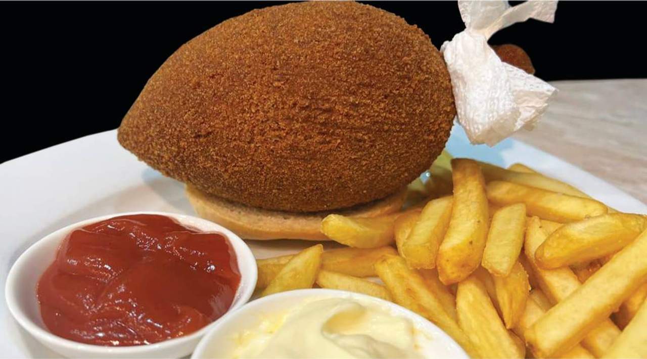 ქათმის ფილე, კვერცხი, კარაქი, ყველი, ნიორი, ორცხობილა, მწვანილი, ფრი, კეტჩუპი, მაიონეზი