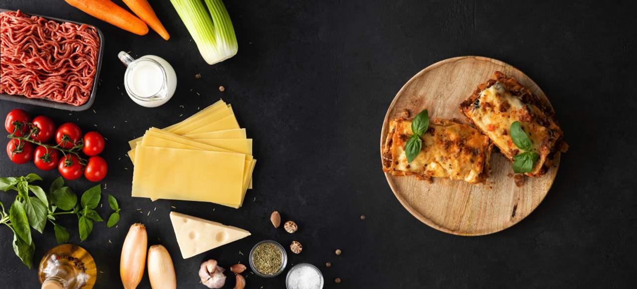 Lasagna senza glutine e lattosio con besciamella , pomodoro e ragù di carne.