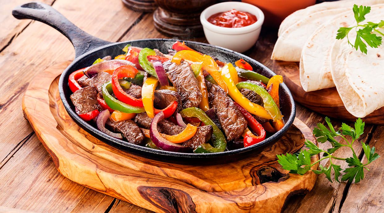 Carne a scelta, fagioli neri, cipolla caramellata, guacamole, lattuga, pomodoro, formaggio bianco