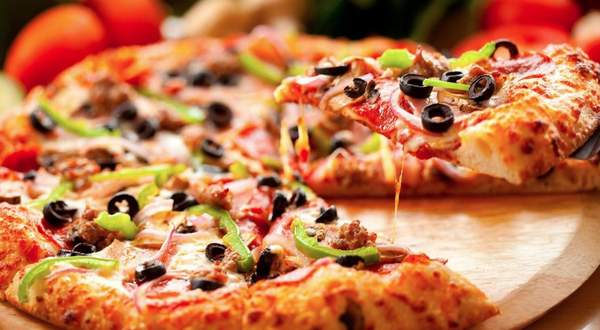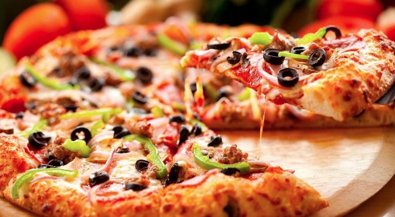 Pomodoro, mozzarella, stracchino, olive, prosciutto cotto, salame e funghi