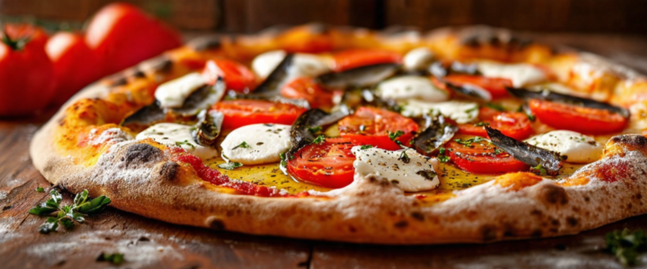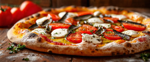 Oignons, poivrons, courgette, champignon, aubergine, tomate fraîche, fromage