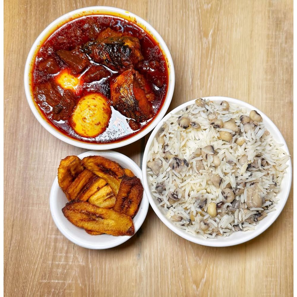 Get a Pack of Jollof rice and Fried rice mix, peppered chicken, a drink of your choice and coleslaw and plantain at a discounted price.