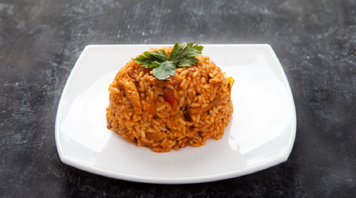 Savory rice with tomatoes, seasoning, pepper and ol burst of flavor for any celebration.