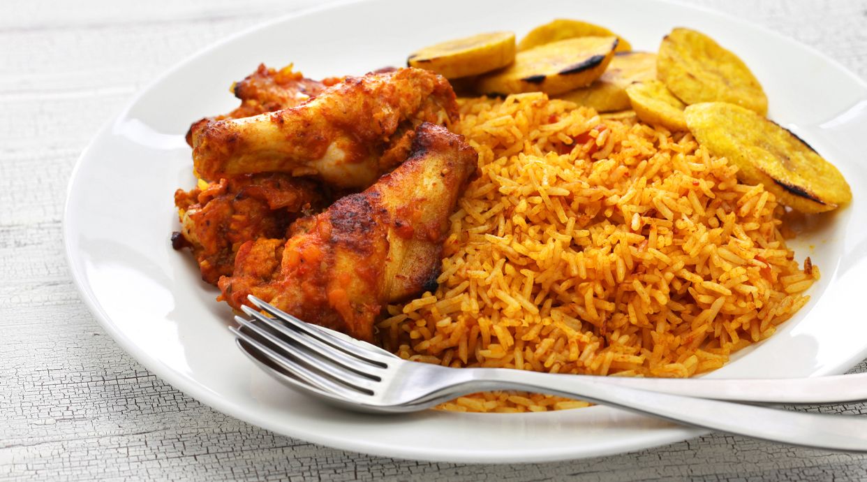 (Per Portion) Classic Nigerian rice cooked in a rich, smoky tomato sauce.