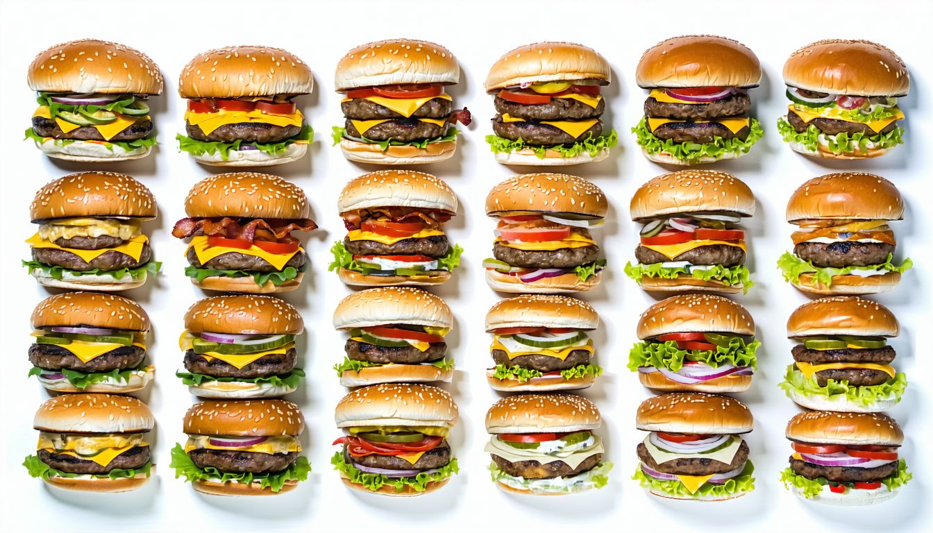 z wołowiną lub kurczakiem, sałatą, pomidorem, papryczkami jalapeno, grillowanym bekonem, krążkami cebulowymi, serem cheddar i sosem firmowym