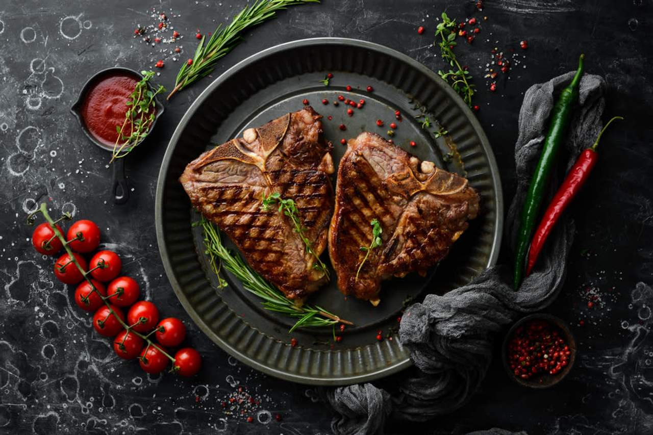Steak de vita cu piure de mango si legume la gratar