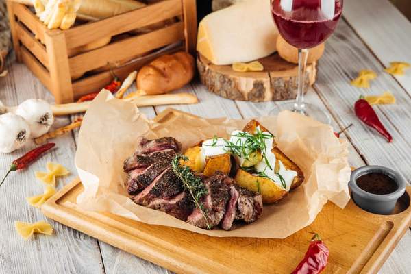 T-bone vita, cartof copt, dulceata de ardei iute, mix salata - 450g
