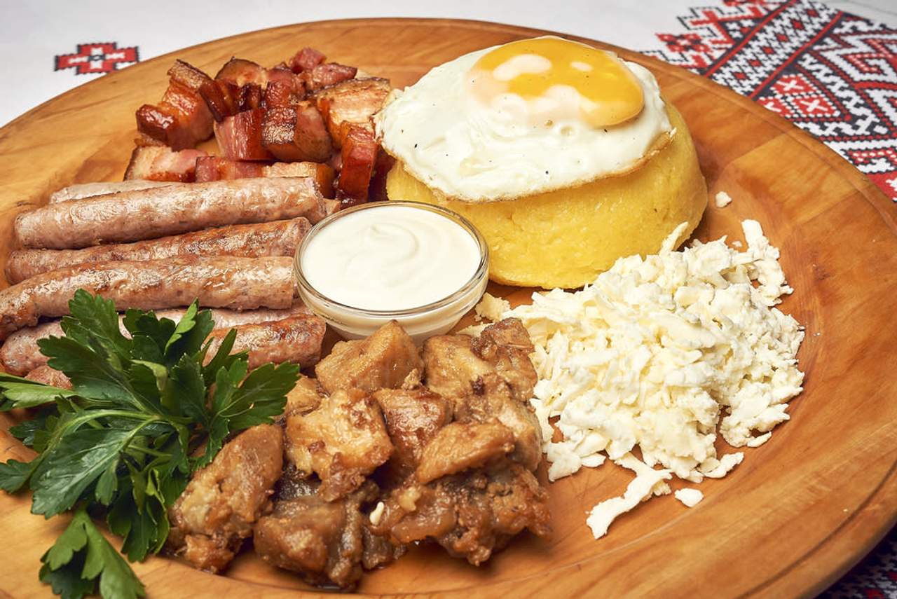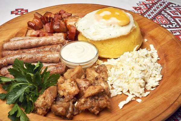 Mamaliguță cu branza de casa si slaninuţă afumata