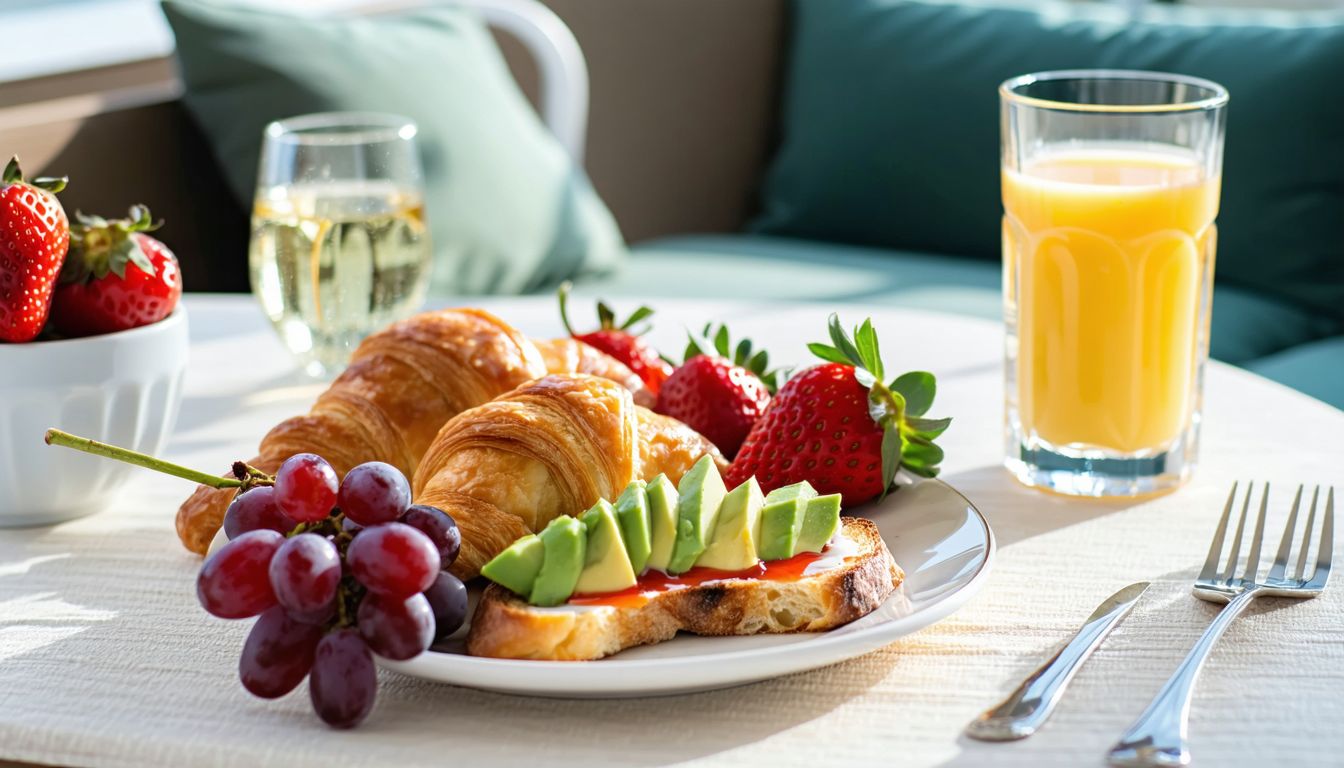 Café au choix, eau 0.5l, jus, Croissant salé, Mini Omelette Végétarien