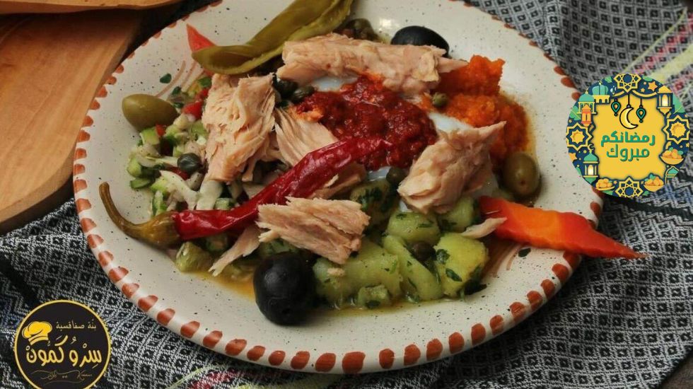 Brick oeuf thon, salade mechouia, salade vert et harissa arbi