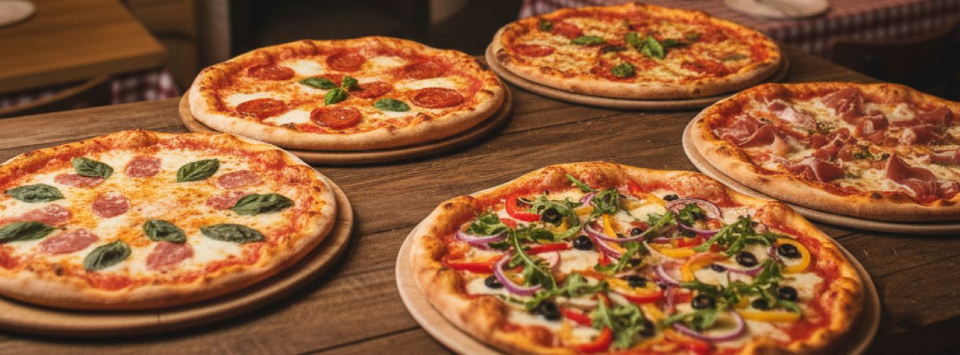 Доматен сос, шунка, гъби, червен пипер, маслини, кашкавал - 450г