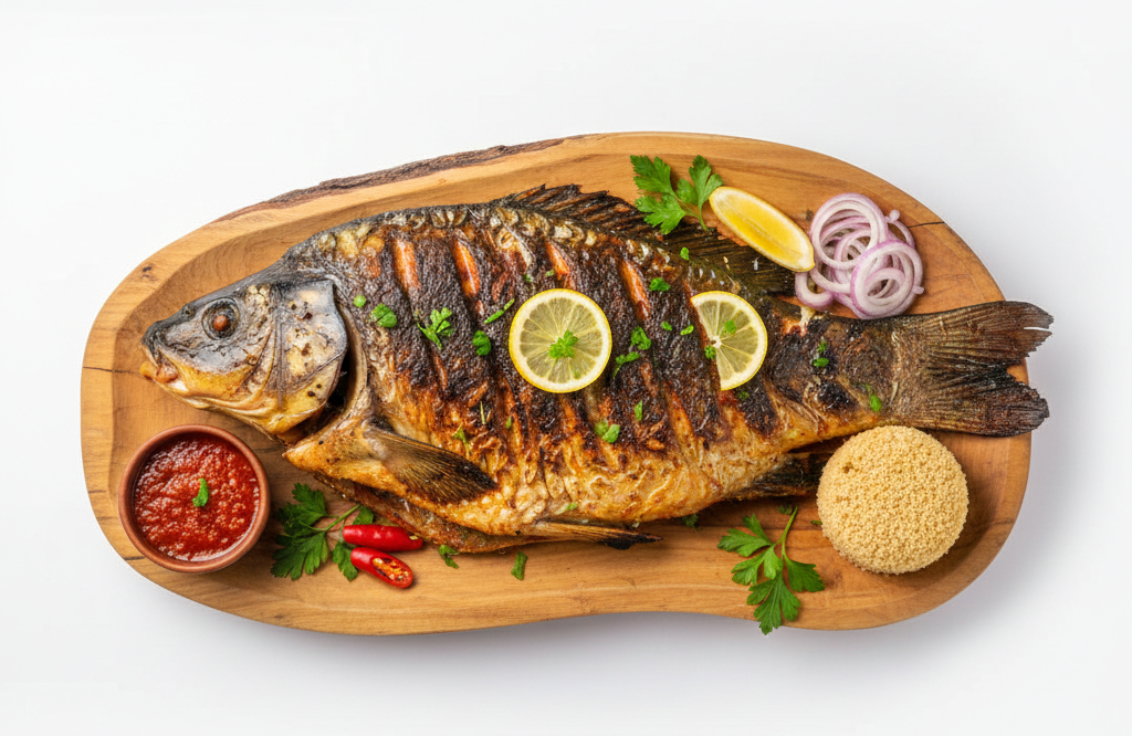 Poulet entier flambé, riche en saveurs et présentation spectaculaire.