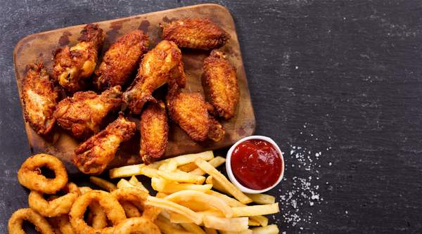 5 chicken burgers o 5 Wraps, más cubo de 23 unidades, más patatas grandes y refresco de 2 l.