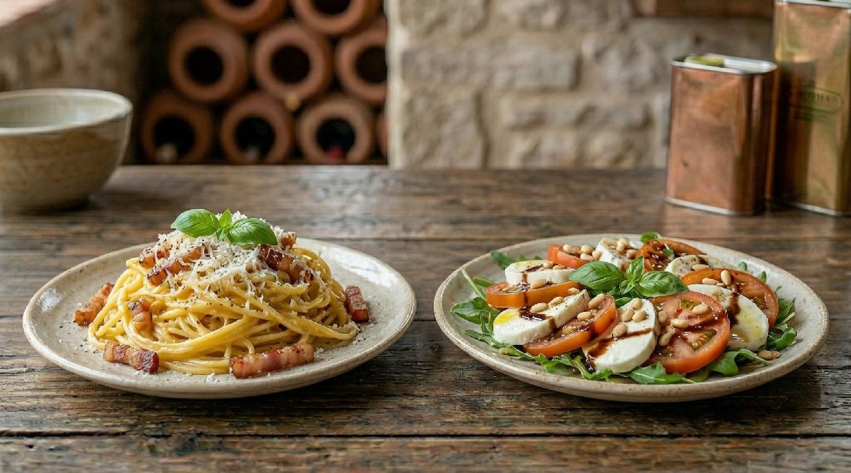 Tomate, mozzarella, burrata, mortadela italiana con pistacho, pesto y nueces.