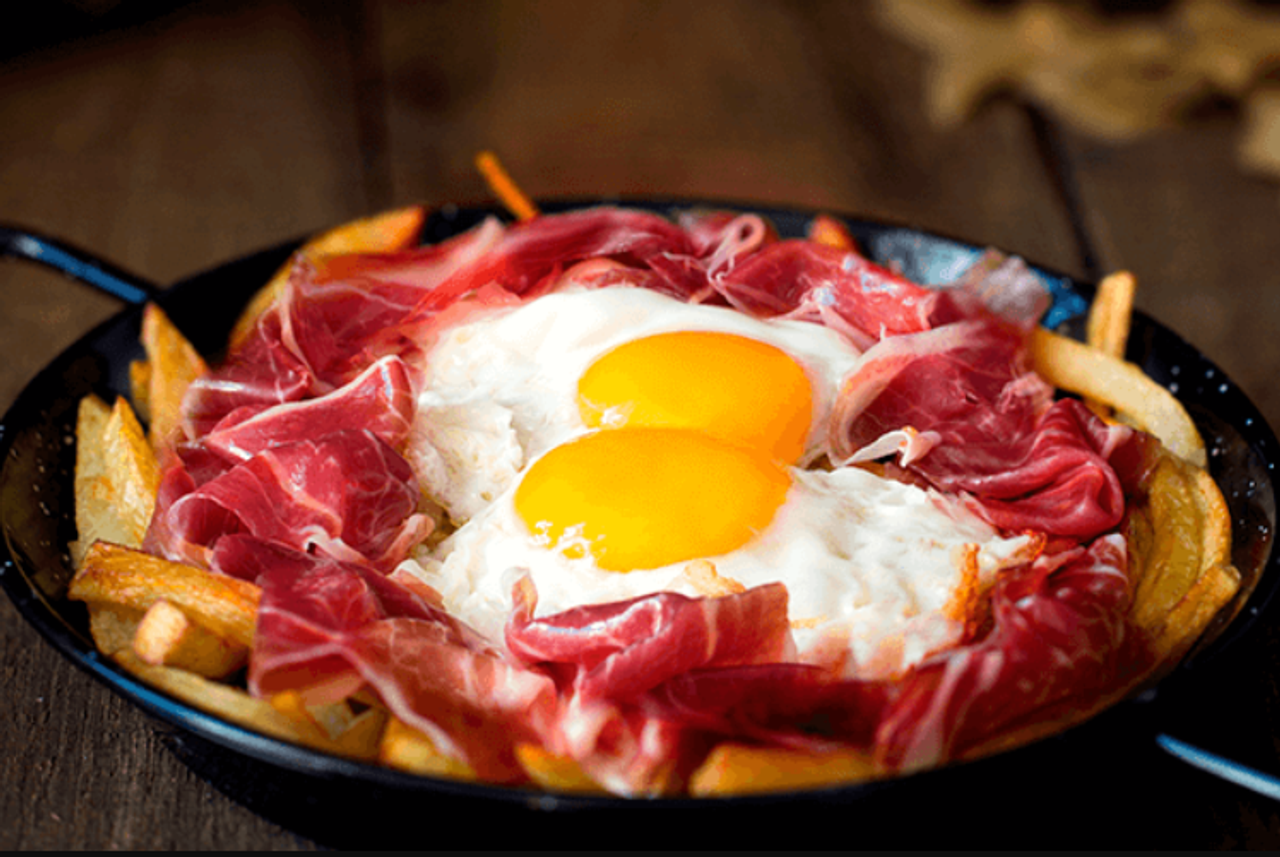 Presa Ibérica En Montadito Con Jamón Y Huevo De Codorniz
