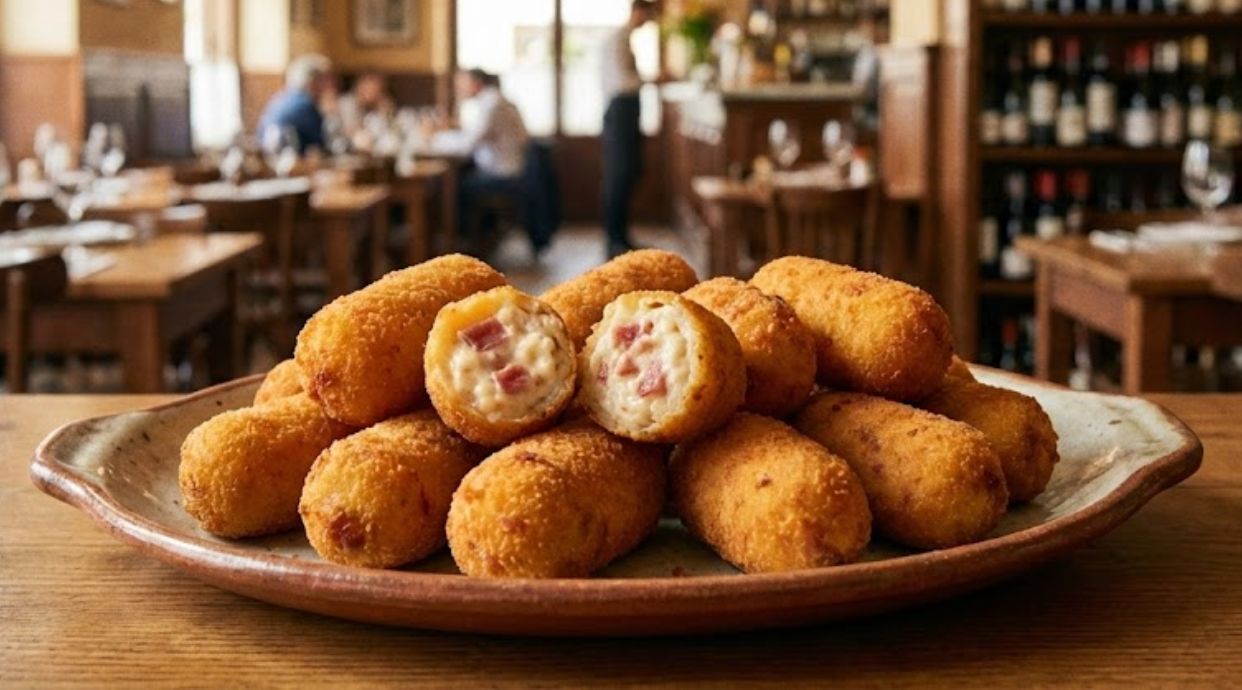 Croquetas artesanas de jamón ibérico, crujientes por fuera y extraordinariamente cremosas en su interior.