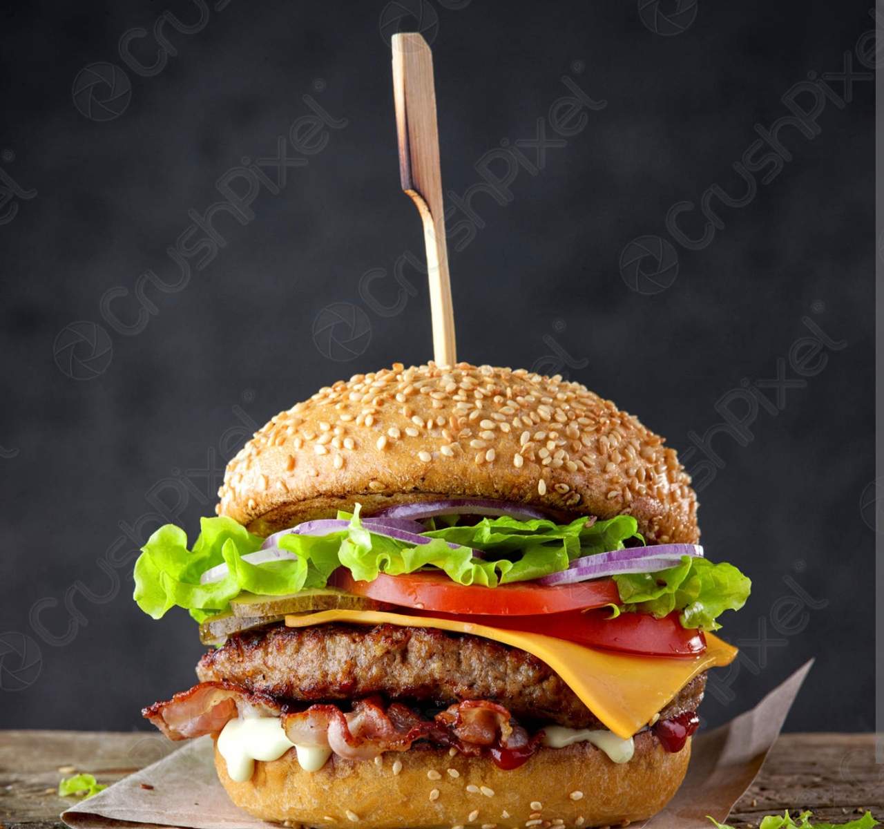 Pan brioche, 180g carne de ternera premium, ( doble carne ) queso cheddar fundido, lechuga, tomate, bacon crujiente, cebolla morada y salsas caseras. Un clásico que nunca falla