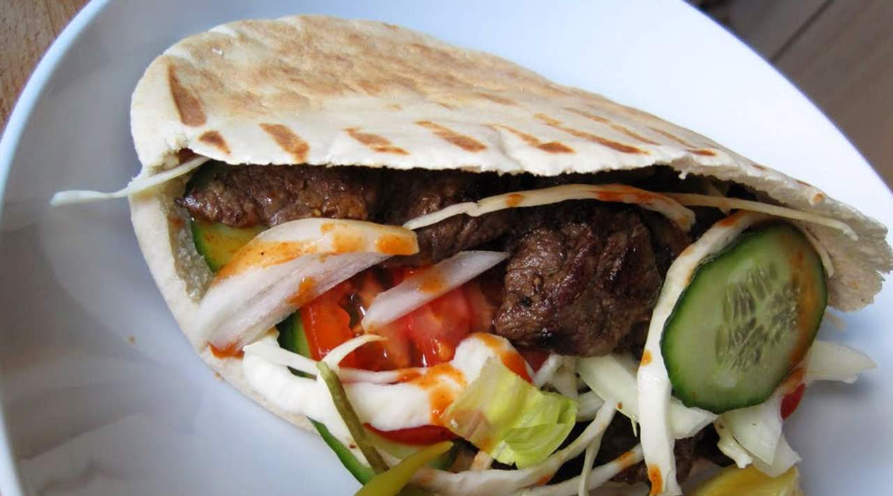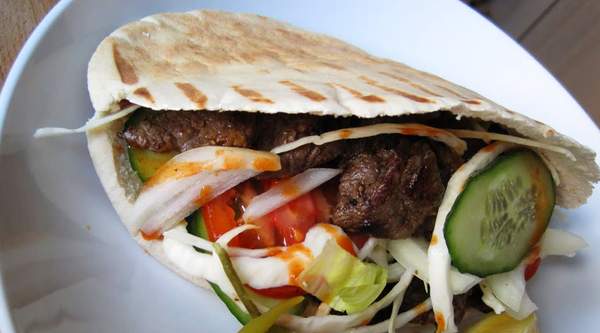 Carne kebab, verduras y salsa especial