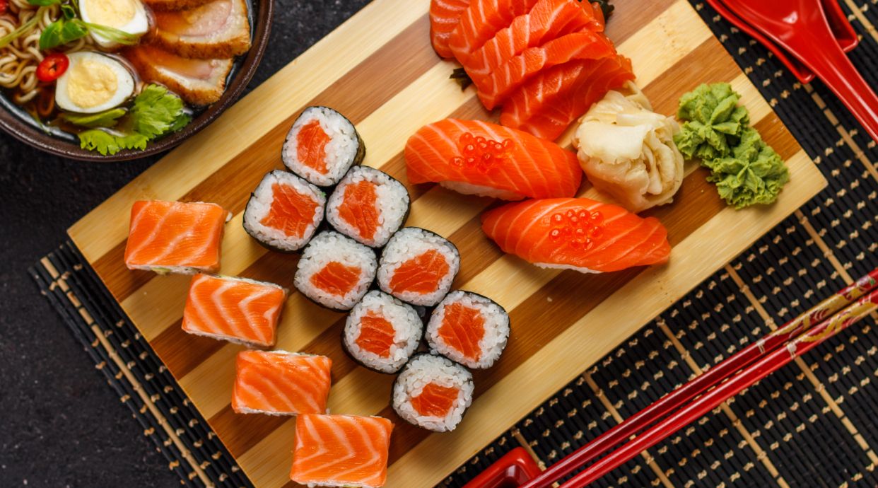 COMBO DE 33 PIEZAS 5 NIGIRI DE SALMON , 8 URAMAKI ESPECIAL , 8 URAMAKI DE SALMON AGUACATE,8 MAKI DE AGUACATE, 4 SHASIMI DE SALMON, WAKAME 5 SALMON NIGIRI, 8 SPECIAL URAMAKI, 8 AVOCADO SALMON URAMAKI, 8 AVOCADO MAKI, 4 SALMON SHASIMI, WAKAME