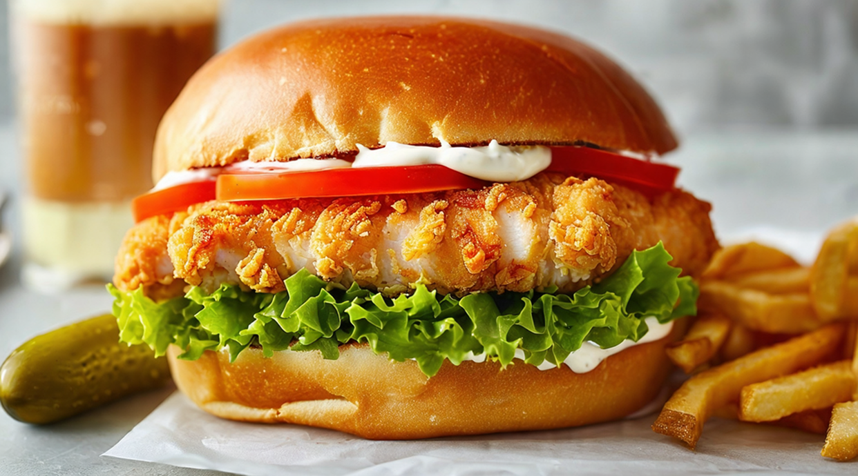 Masa de pollo, mayonesa, lechuga, tomate y huevo