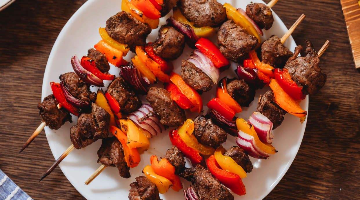 Carne de ternera pollo o mixto en plato, acompañado de ensalada y pan de pita