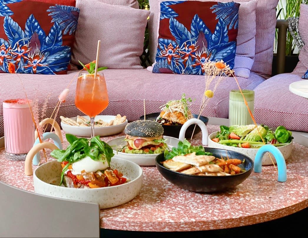 Avocado / Zucca Hokkaido con Cannella / Halloumi / Insalata / Barbabietola fresca Melograno / Sedano / Mandorle Tostate / Vinaigrette ai Lamponi Avocado / Cinnamon Hokkaido Pumpkin / Halloumi / Fresh Greens / Raw Beetroot Pomegranate / Celery / Toasted Almonds / Raspberry Vinaigrette