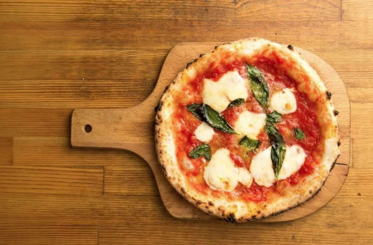 Pomodoro passato, mozzarella, basilico, olio, prosciutto, funghi, sottaceti, peperoncino e origano.