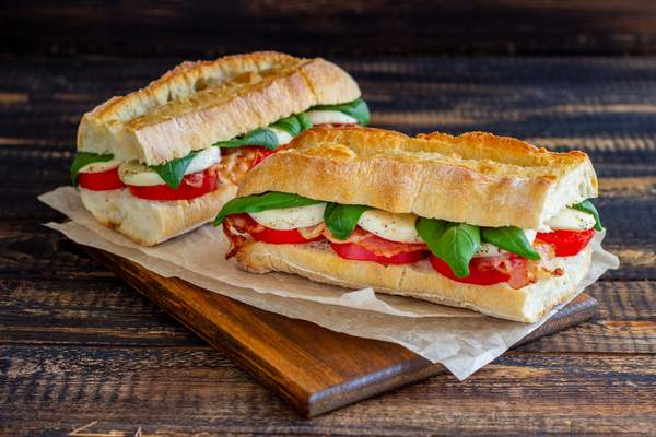 Pane ciabatta, maionese, prosciutto crudo San Daniele, insalata, pomodoro