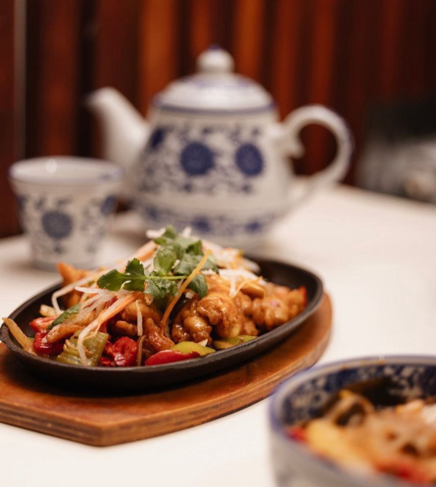 Курица по-сычуаньски — это обжаренные кусочки куриного филе с перцем чили, чесноком и сычуаньским перцем, который придаёт блюду характерное покалывающее, слегка онемеляющее ощущение во рту. Соус обычно готовится на основе соевого соуса, рисового уксуса, сахара и кунжутного масла, благодаря чему вкус получается одноврем��нно острым, солёным, сладковатым и ароматным. Блюдо подают горячим рисом посыпают зелёным луком.