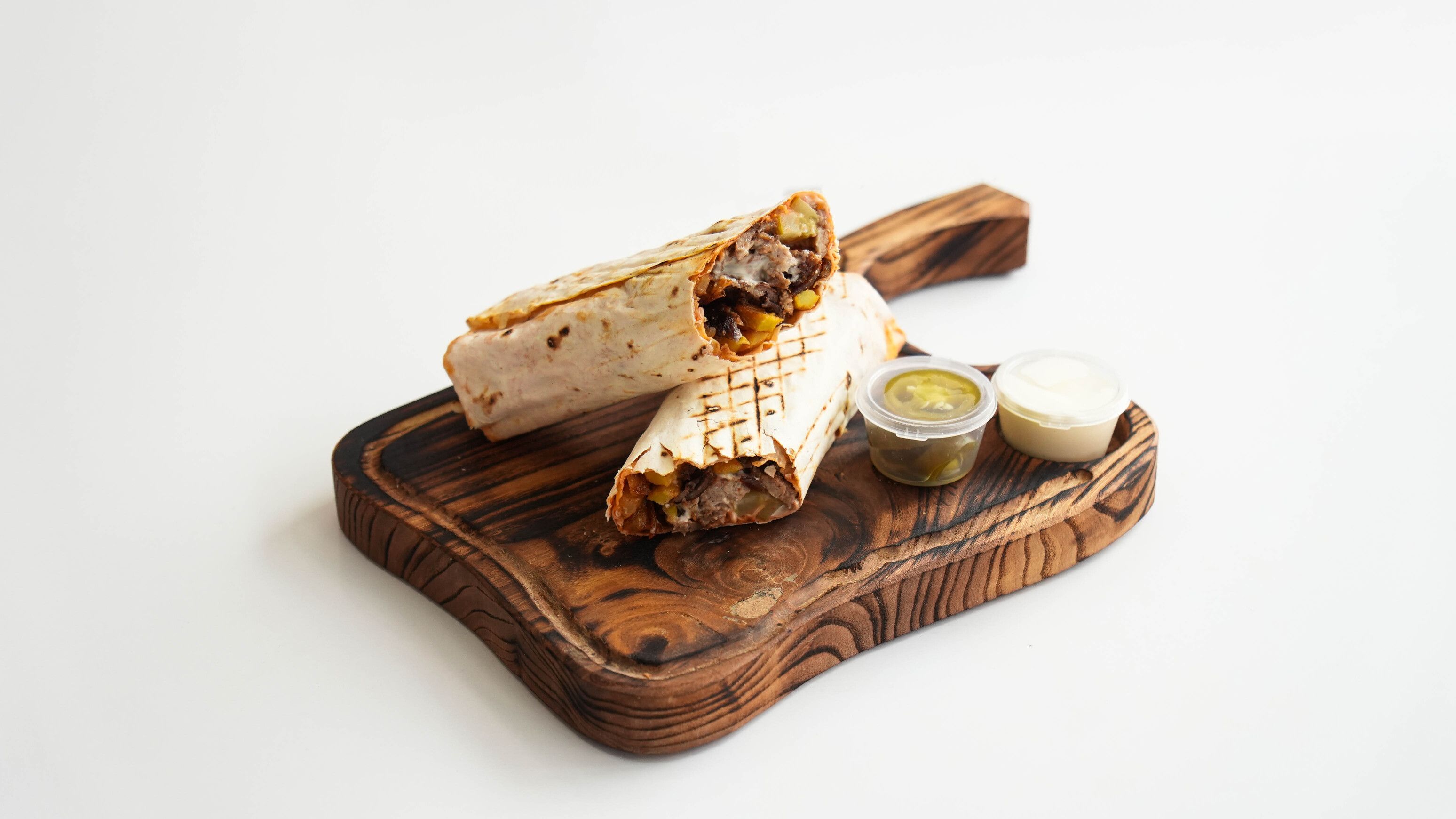 Лаваш, овощи, соус, мясо говядины