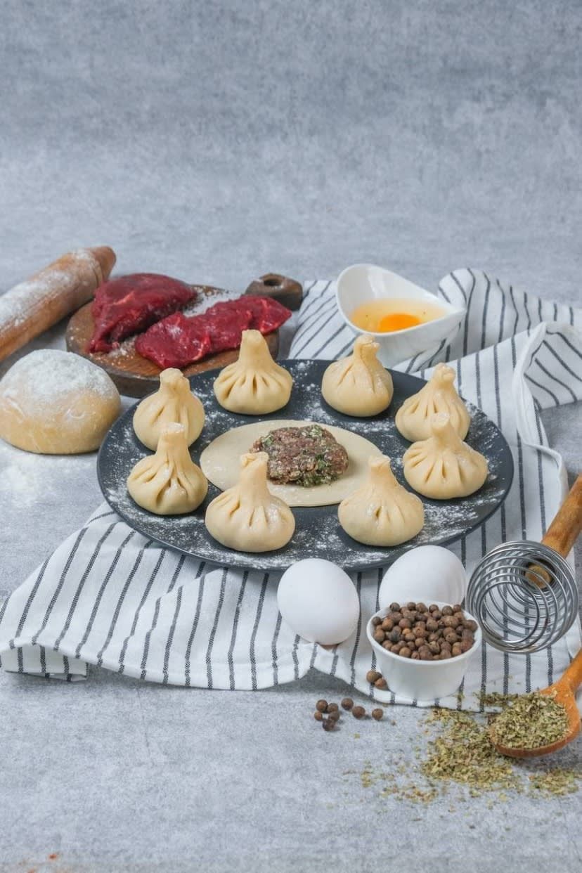 Состав: мука в/с, яйцо, соль, вода, говяжий фарш, лук репчатый, кинза, чеснок, петрушка, соль, перец, хмели сунели, бульон говяжий.