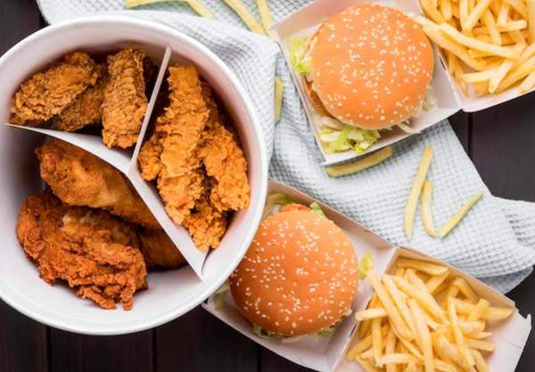 notre menu rapide se compose du deux pièces poulet crostillant pane et du pain avec des sauces