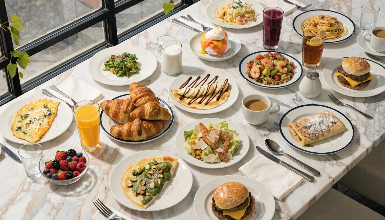 Omelette, fromage rouge, dinde fumée, jben, amlou, huile d'olive, cappuccino, jus d'orange