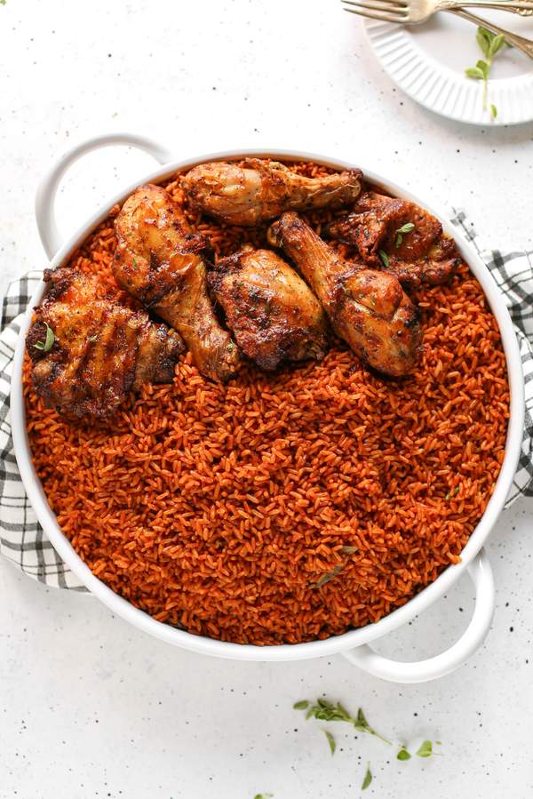 Tasty seasoned rice cooked with palm oil, spices, and local ingredients