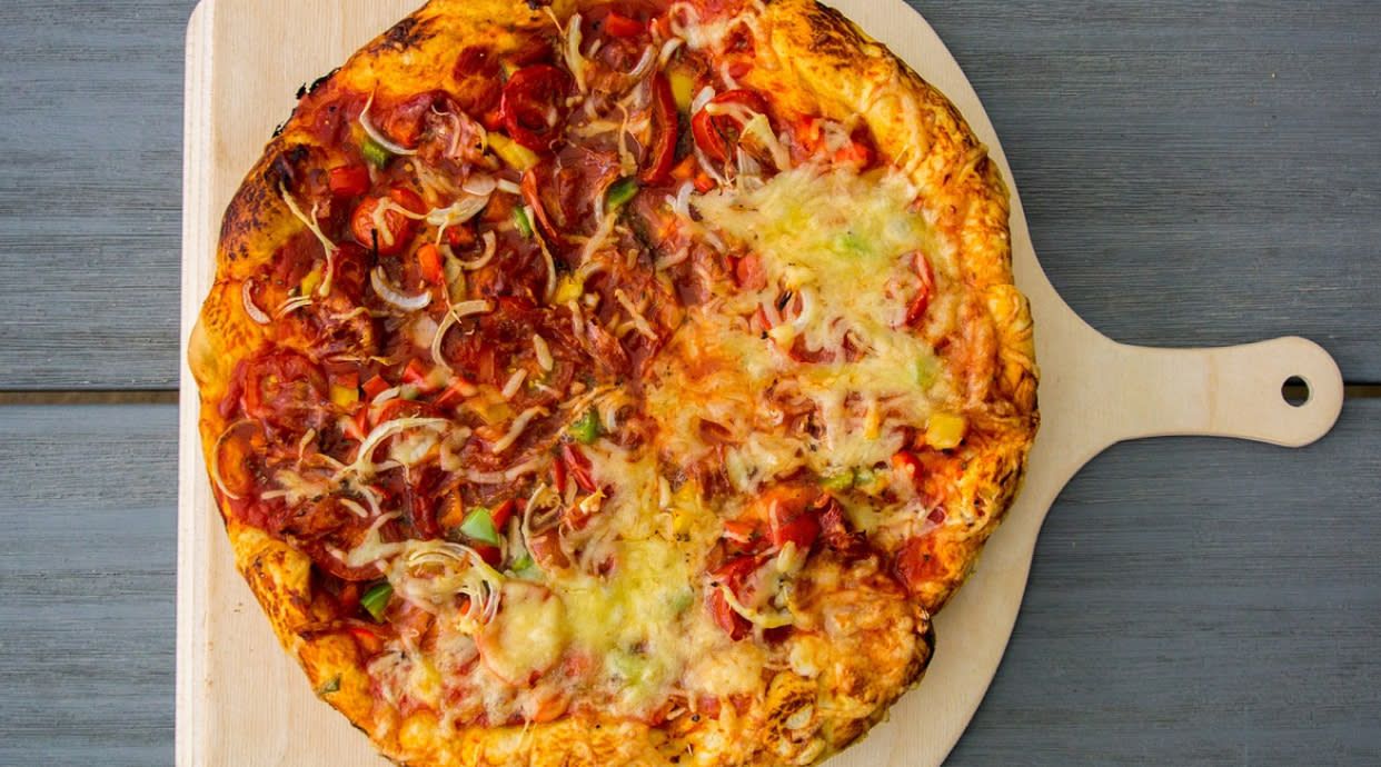 Sos pomidorowy, ser, kiełbasa pepperoni, cebula, papryka jalapeno, oregano