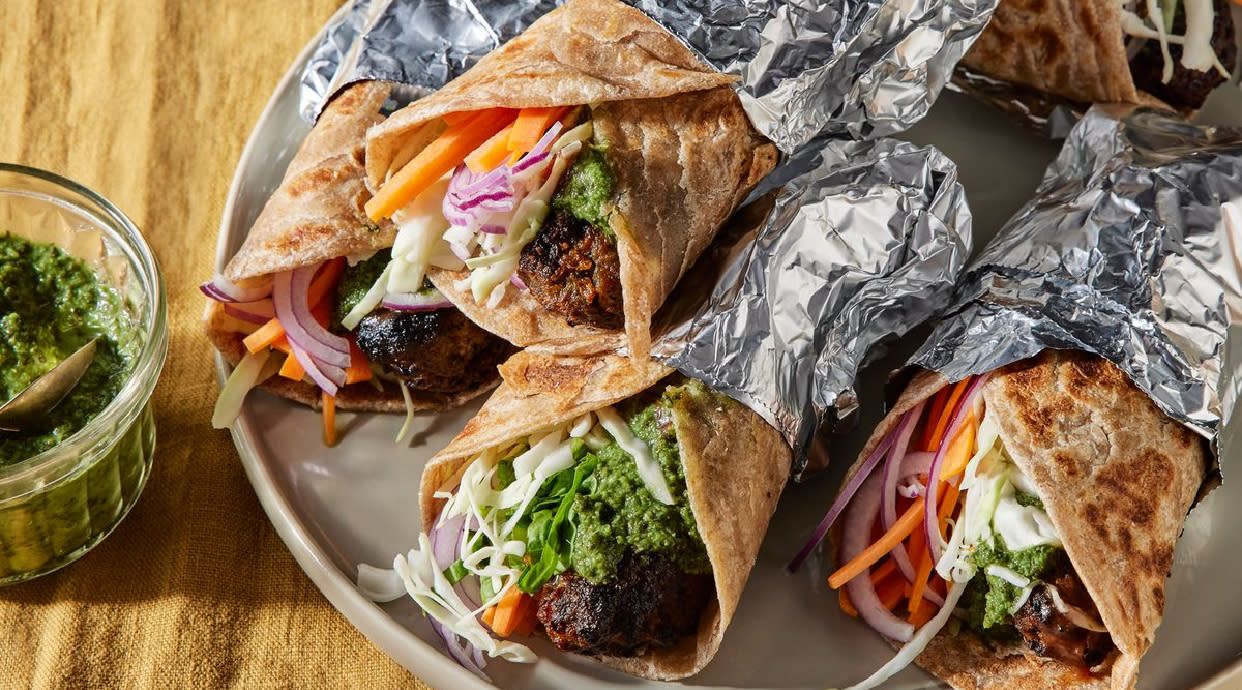 z surówką, falafelem i sosem
