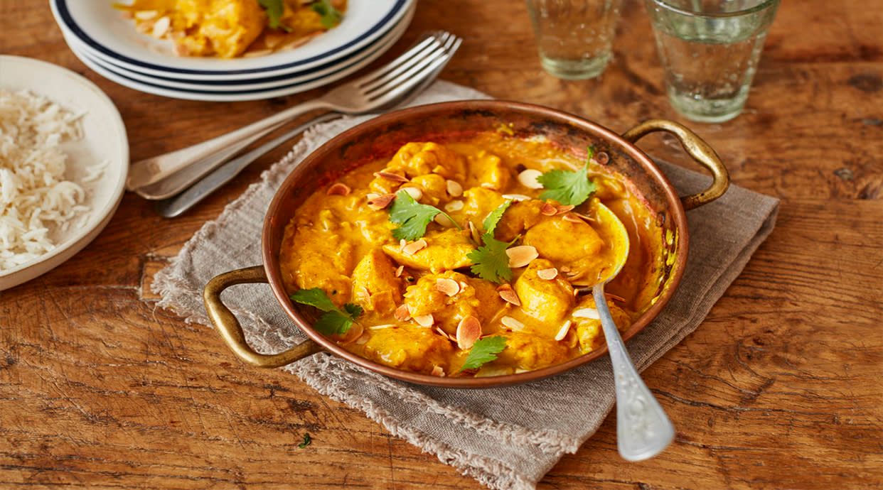 Kawałki kurczaka z ziemniakami w sosie z indyjskimi przyprawami